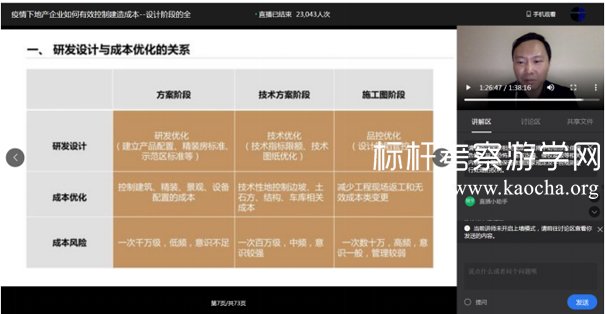 毛老师公开课《疫情下地产企业如何有效控制建造成本 ── 设计阶段的全过程全方位成本优化管理》,在线直播1.0小时, 23043人次观看