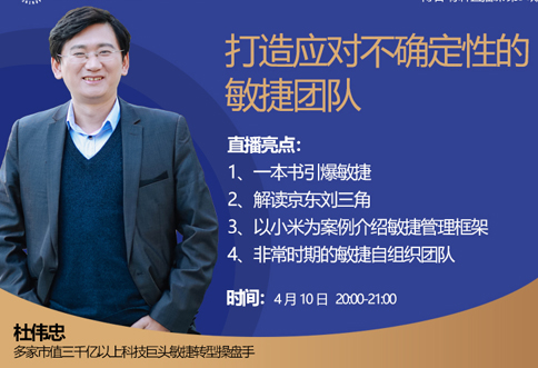 杜伟忠,小米敏捷转型首席顾问,前京东敏捷转型创始人;多家市值三千亿以上科技巨头敏捷转型操盘手;AGILE2046创始人。